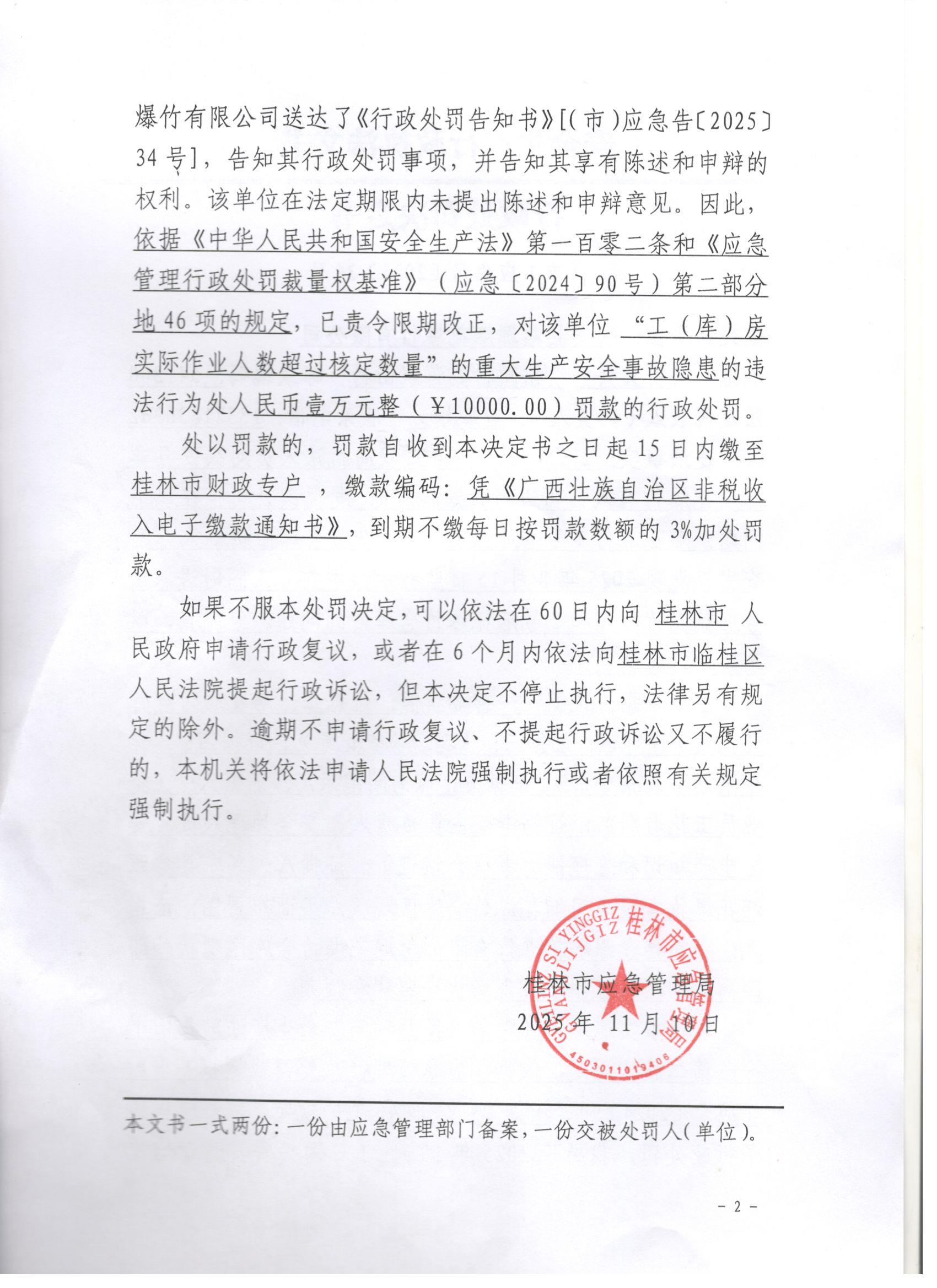 兴安县鑫源烟花爆竹有限公司行政处罚决定书