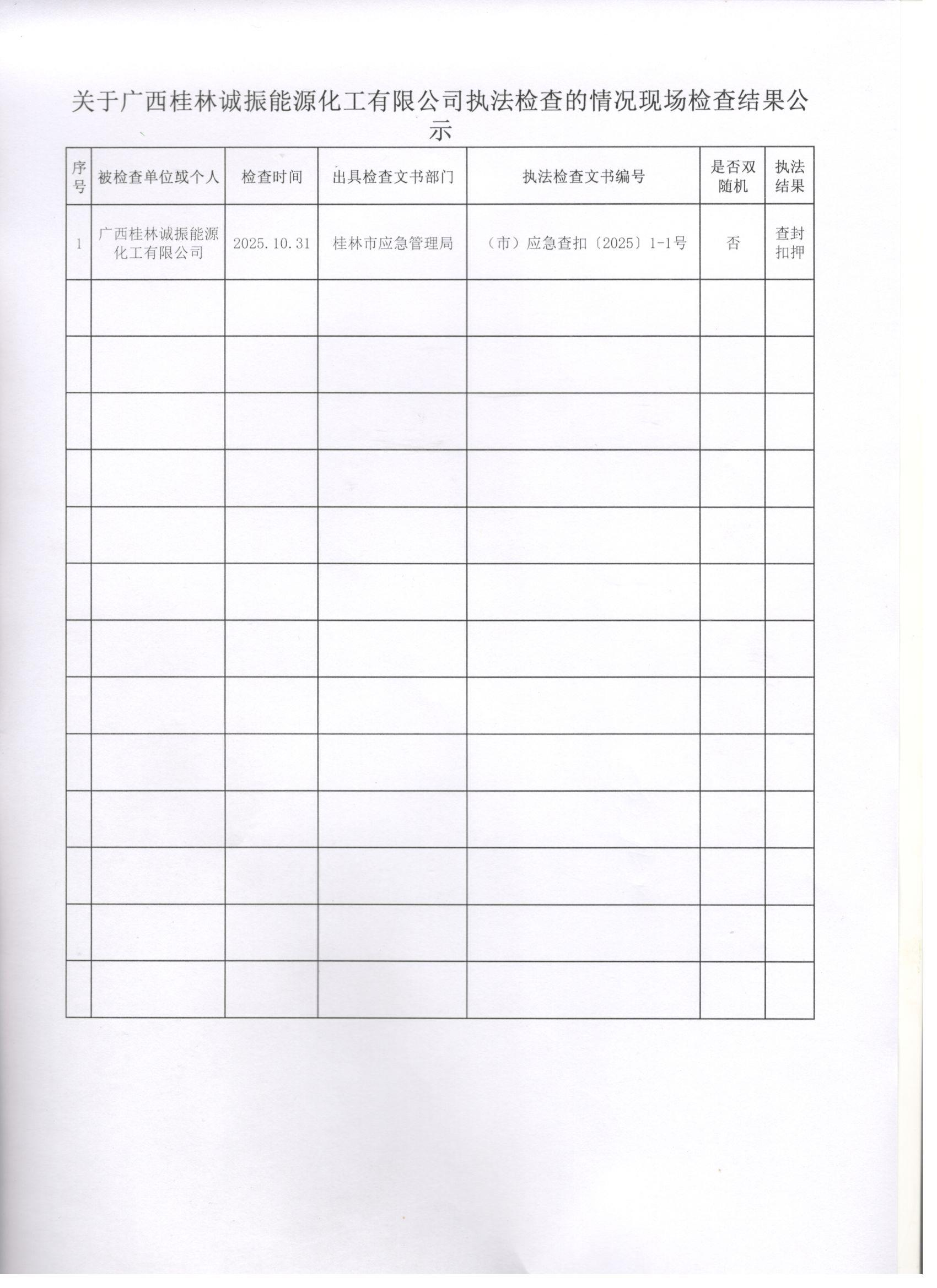 关于广西桂林诚振能源化工有限公司执法检查的情况现场检查结果公示