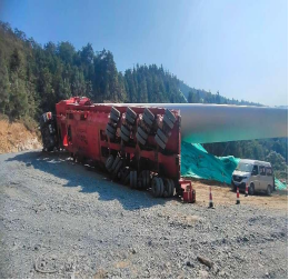 2024年11月10日上午,宏通公司驾驶员黄永城驾驶粤BEQ337大型挂车承运第一支叶片试路上山,前面三台铲车负责牵引,当车队行至三千界林场内道路5.69km转弯处时,挂车突然向右侧翻,叶片尾端扫断后方树木,树木倒下后砸伤正在作业的伐木工人龙吉斌,运输队指挥长范卫国带领在场人员立即上山将伤者抬至公路上,并及时拨打“110”和“120”,为抢时间,使用在现场的皮卡车直接将伤者送至资源县人民医院,11时10分到达医院,12时03分医院宣布抢救无效死亡。