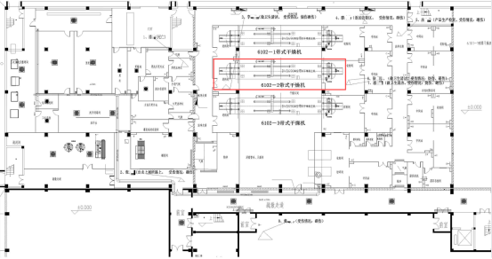 (三)干燥车间平面布置图:红框处为2号带式干燥机